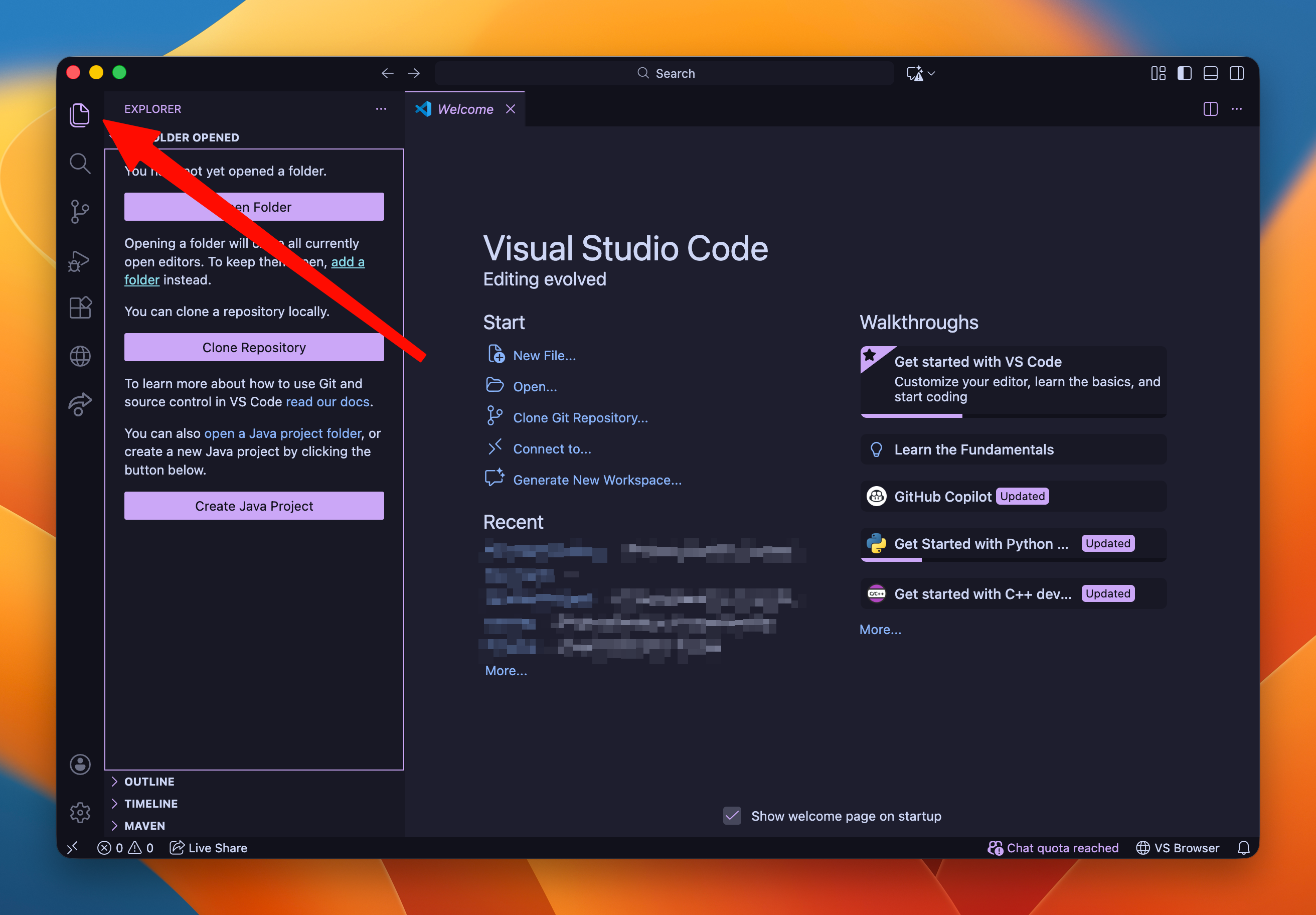 After, click on "Open Folder" and follow the file dialog to create a folder for your Mini-App Project.