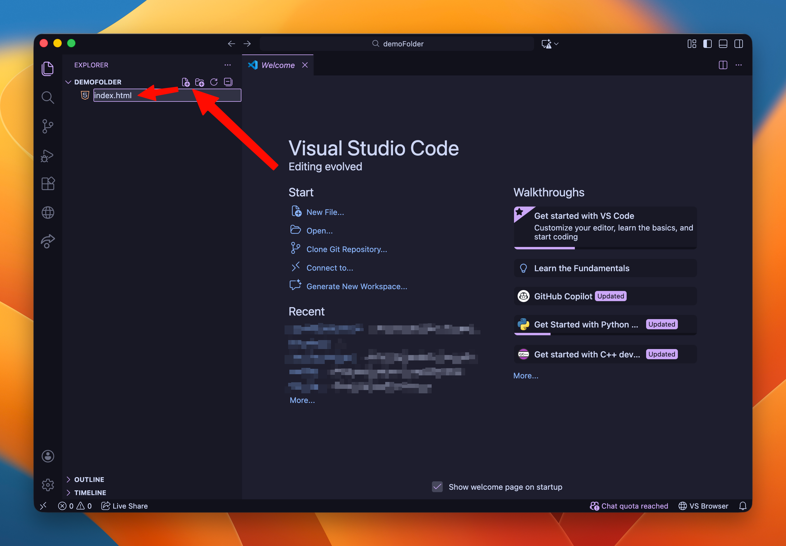 In your folder, you must create your first Mini-App, the simplest way is to use HTML